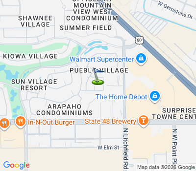 Furnished Artesia model in Beautiful Gated 55+ Sun Village Resort! Many upgrades in this Vaulted Ceiling Spot bedroom plan. Here are just a few.... roof underlayment (2018) HVAC (2025), Laminate flooring, Remodeled Kitchen w/quartz counters, tall bath vanities and counters, Garage door & springs, breakers replaced in electrical panel, fresh gravel in back yard! Located in the Pueblo Village on a cul da sac. Your front yard landscape it taken care of by HOA. Sun Village is a 55+ Gated, Resort Style Community. Enjoy the 18 hole par 3 golf course, gigantic heated pool & spa, pickleball, tennis, fitness gym, woodshop, billiards, onsite entertainment in our ball room and onsite restaurant!Sun Village, is a gated, security guarded, age 55+, community, in the city of Surprise, Arizona. This small community is made up of just under 1400 homes and condominiums. The Sun Village Community has an 18 hole, par three *no-*riding* golf course, an heated swimming pool and spa, tennis, pickle ball and shuffleboard courts, horseshoe pits, an exercise room, a billiards room, sewing and crafts rooms, and a ballroom where national and international entertainment can be enjoyed! Close by you will find the spring training home of the Texas Rangers and the Kansas City Royals. Across the street from Surprises' baseball complex, is a 25 court tennis complex that is home to national and international tennis tournaments. A Regional Library, a park, and a fishing lake are also part of this fantastic recreational area.Property Details