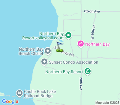 CASTLE ROCK LAKE RETREAT!! Spectacular Golf Course views are yours from this beautiful lakeside retreat at Northern Bay Resort. Main level condo featuring 3 bedroom, 2 bath, open concept Living/Dining/Kitchen, fireplace, walkout on the patio from the living room or primary bedroom. This end unit has an attached garage with easy access to your condo and it also has extra insulation blown in the ceiling. New water heater in 2025, new roof in 2023, newer AC Unit. Short walk to the beach, playground area, pickleball courts, marina and the Tiki Bar. Enjoy a day of golf or spend your day on the lake. Start making memories today!Property Details