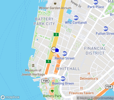 Majestic water views unfold at your feet in this unparalleled two-bedroom, two-and-a-half-bathroom showplace perched high on the 45th floor at 50 West, an exemplary full-service condominium. Inside this spectacular 1,510-square-foot high-floor residence, ceilings soar 10 feet high over wide-plank hardwood floors and walls of glass that capture mesmerizing views and glorious natural light to the south and east. A long gallery entry lined with exceptional storage and a powder room ushers you into the show-stopping great room, the perfect setting for relaxing and entertaining with shimmering water views as your backdrop. A wall of built-in cabinetry and a bar make gracious entertaining effortless. Chefs will feel right at home in the stunning open kitchen, where custom walnut cabinetry and granite countertops surround a fleet of Miele and Sub-Zero appliances, including a vented four-burner cooktop, wall oven and speed oven, cabinet-front refrigerator, dishwasher and wine refrigerator. Enjoy casual meals under designer lighting at the wide waterfall island. The desirable split-bedroom layout places the owner's suite along the eastern exposure and dramatic city views. The king-size bedroom boasts a wall of closets, including a walk-in, while the en suite bathroom features an oversized benched rain shower, linen storage, radiant heat floors, a Toto commode, a wide double vanity and illuminated mirrors, all surrounded by large-format marble tile. The secondary bedroom enjoys western water vistas, a wall of built-ins, a roomy closet and a well-appointed en suite bathroom. A vented in-unit washer-dryer and Lutron-controlled window shades complete this sumptuous home in the sky. 50 West Street is a contemporary luxury condominium from renowned architect Helmut Jahn and interior designer Thomas Juul-Hansen. This fantastic addition to the Financial District landscape offers 24-hour doorman and concierge service and four full floors of amenities, including a large fitness center with a golf simulator and indoor cycling studio; spa treatment rooms; children and teen recreation spaces; a screening room; the Water Club's 60-foot swimming pool, sauna and steam rooms; and The Observatory, 64th-floor sky lounge with aerial views and two outdoor dining areas. From this outstanding location where the Financial District meets Battery Park City, you're surrounded by world-class shopping and dining. Head to Brookfield Place or Westfield World Trade Center to explore culinary outposts Le District and Eataly, plus endless luxury retail destinations. The Battery offers 25 acres of breathtaking waterfront outdoor space, and transportation is effortless with 1, R/W, 4/5, J/Z and PATH trains, excellent bus service, The Brookfield Place Ferry Terminal and CitiBikes all within reachProperty Details