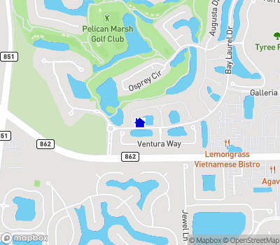 Residents of Pelican Marsh enjoy access to the Pelican Marsh Community Center, offering world-class amenities including tennis, pickleball, a state-of-the-art fitness center, and the popular Courtside Restaurant.